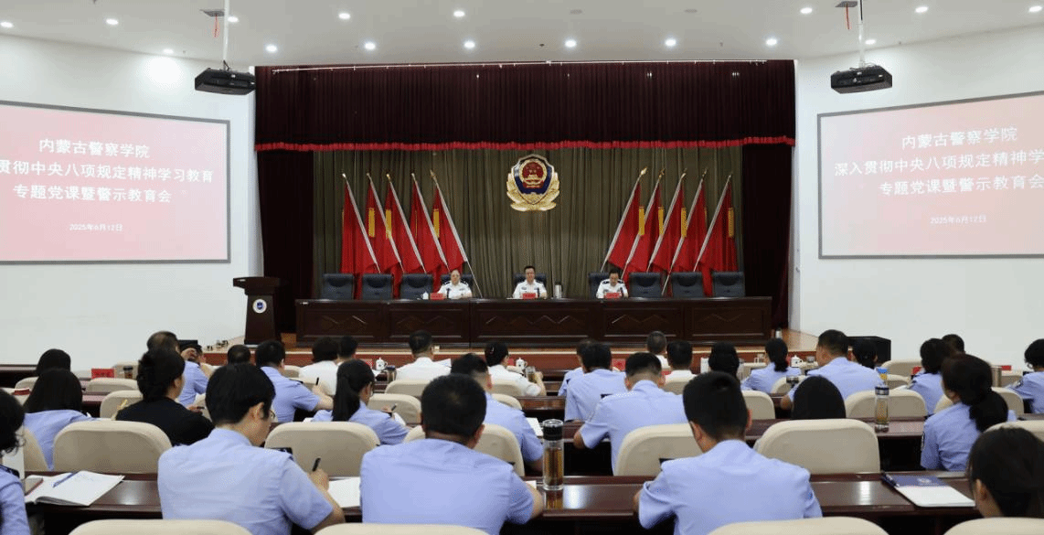 6月12日下午,内蒙古警察学院组织召开深入贯彻中央八项规定精神学习教育专题党课暨警示教育会,李永林同志出席会议并讲授专题党课。会议传达了《关于集中整治违规吃喝的通知》等文件精神,对整治违规吃喝问题进行再动员再部署,传达了近期上级关于违反中央八项规定及其实施细则精神典型案例的通报,组织全体参会人员集中观看了警示教育片。会议强调,党的十八大以来,以习近平同志为核心的党中央从制定落实中央八项规定开局破题,持续深入推进作风建设,...