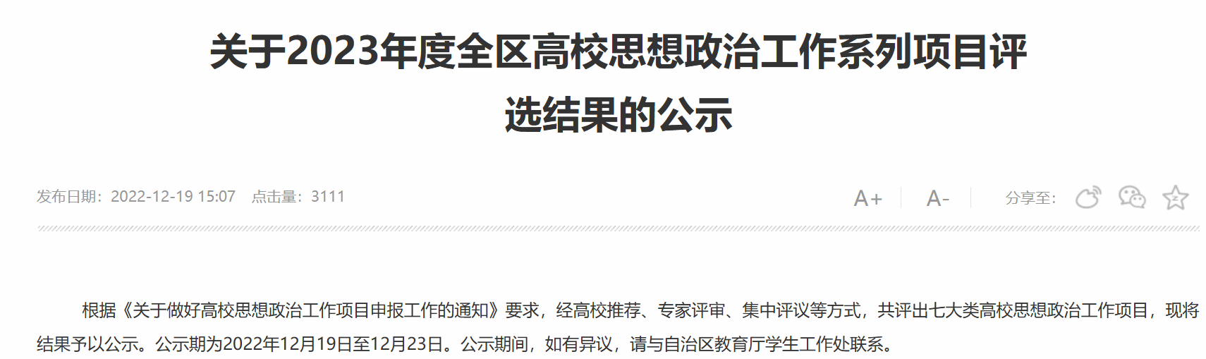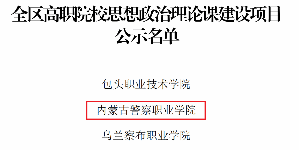 内蒙古自治区教育厅发布了关于2023年度全区高校思想政治工作系列项目评选结果的公示。经高校推荐、专家评审、集中评议等方式,共评选出全区高职院校思想政治理论课建设项目三项,我院政治理论教学部申报的项目脱颖而出,成功获批全区高职院校思想政治理论课建设项目。
