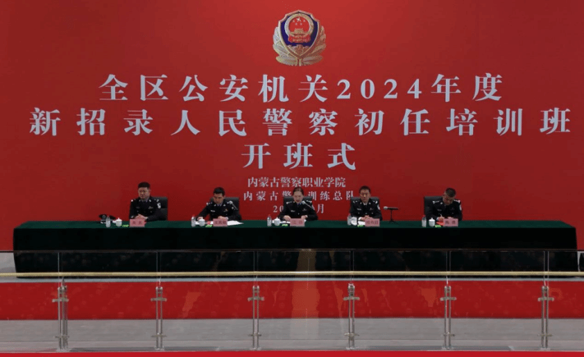 2025年3月25日上午,全区公安机关2024年度新招录人民警察(公安院校毕业生)初任培训班在内蒙古警察职业学院和林格尔校区隆重开班。自治区公安厅政治部人事训练处处长江田,内蒙古警察职业学院党委委员、副院长哈布日,成教处处长陶德,成教处学员大队大队长周亮出席开班式,1110名培训班学员参加,开班式由公安厅政治部人事训练处副处长王宾祖主持。