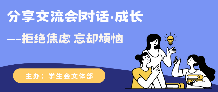4月16日晚,学生会文体部于团委会议室开展了“对话·成长---拒绝焦虑 忘却烦恼”为主题的分享交流会,同学们在一起就学习、训练、容貌、社交等方面的焦虑交流畅谈。