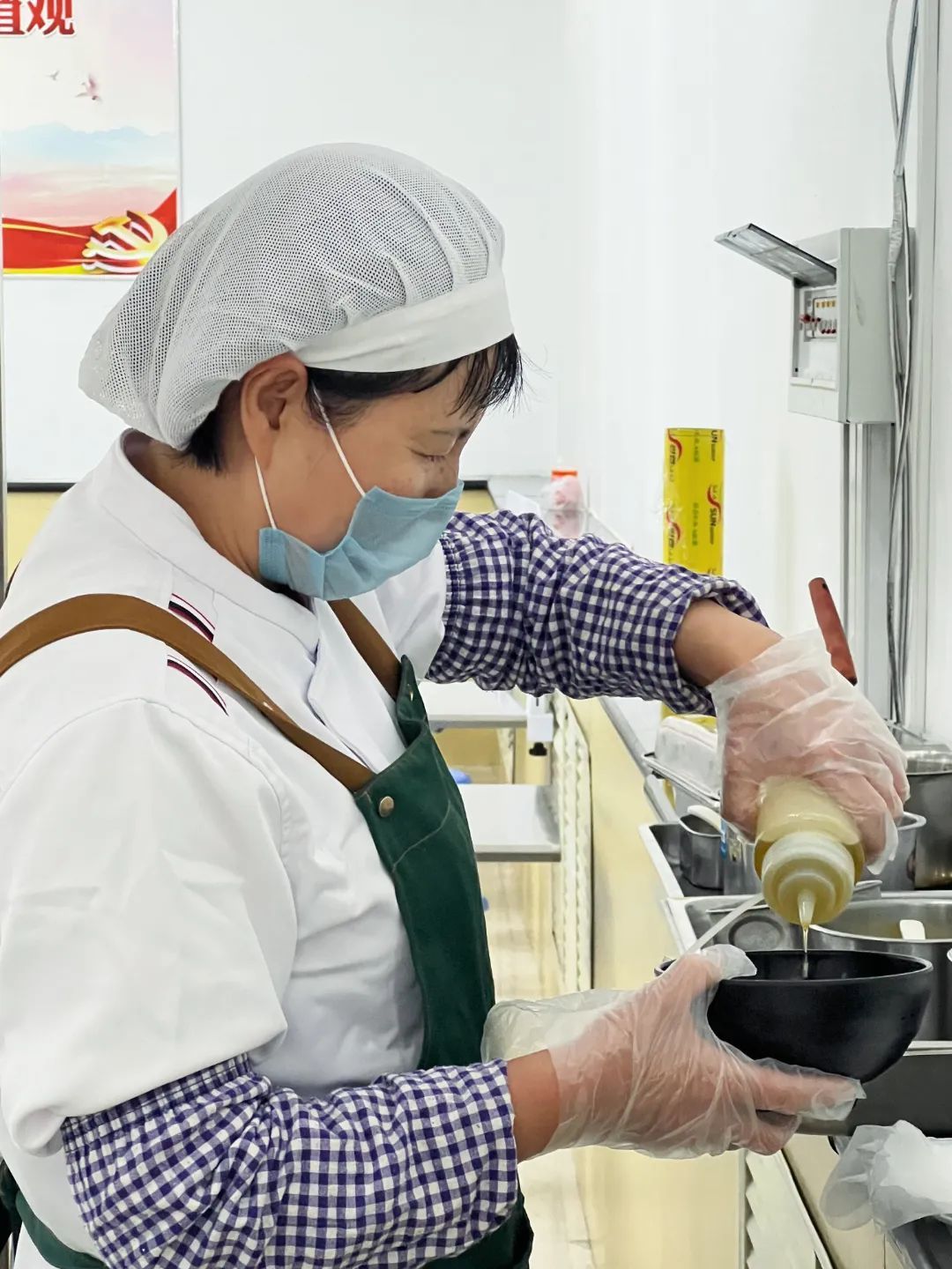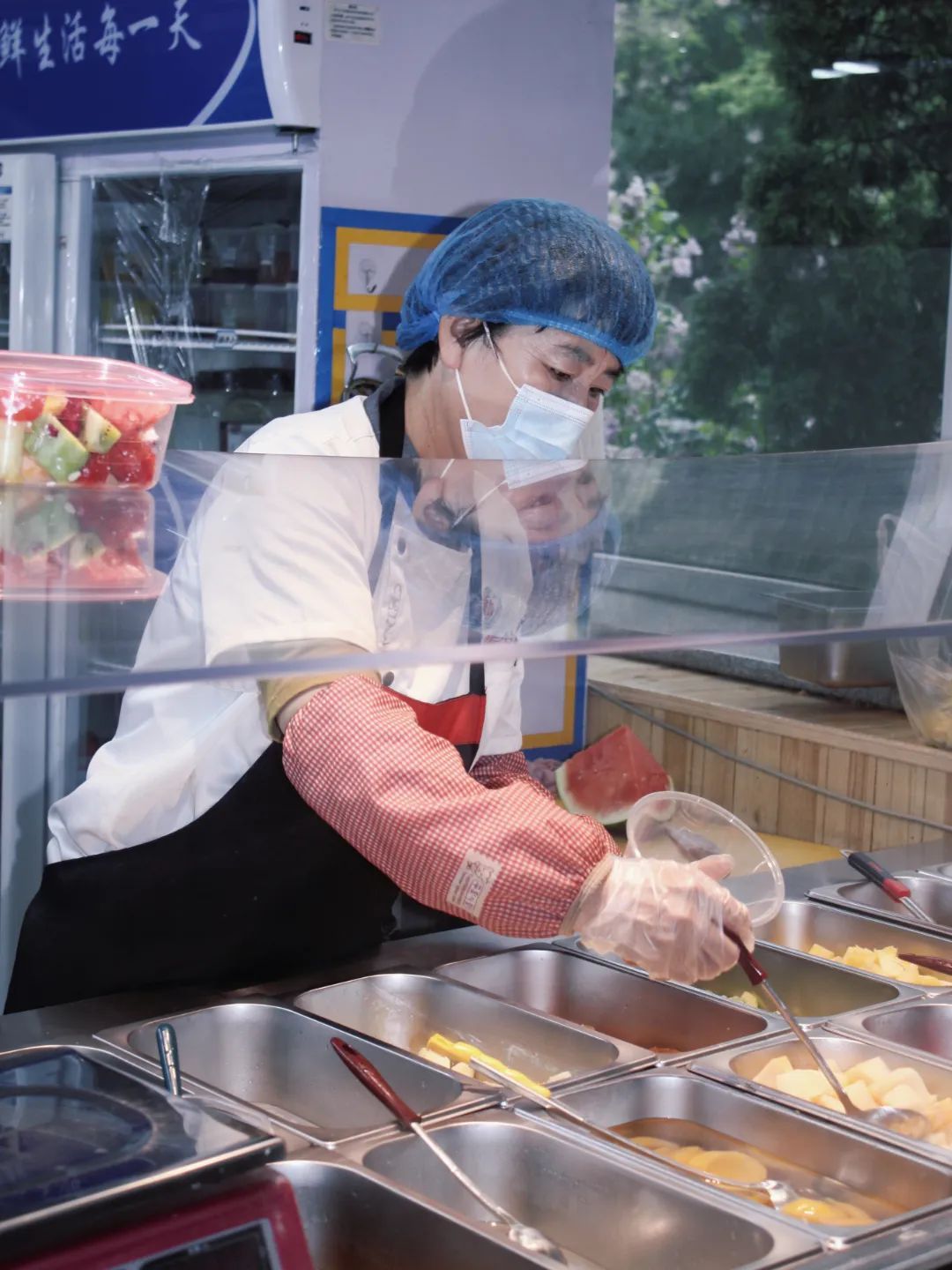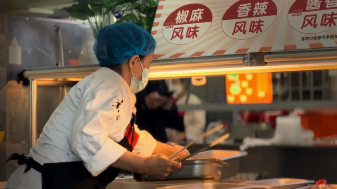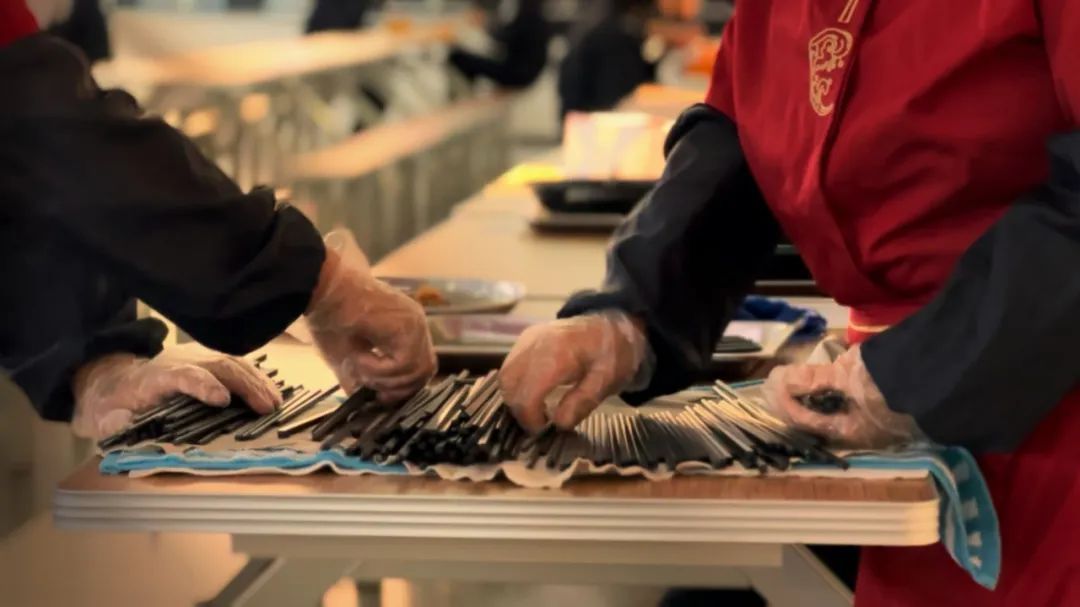 食堂工作人员忙碌的身影。