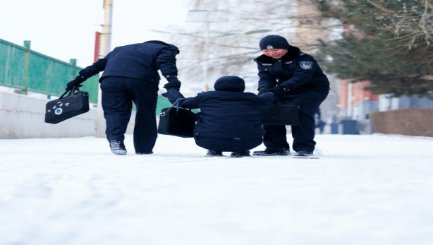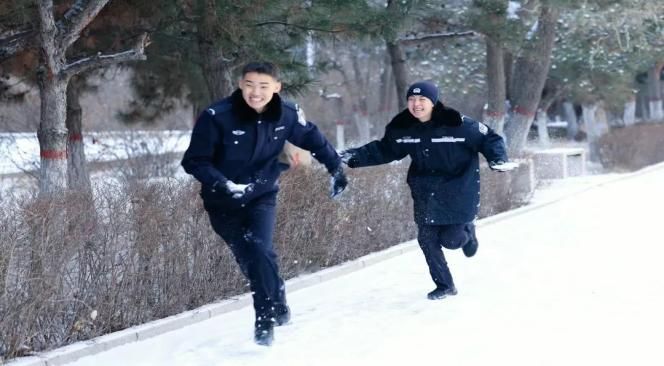 朗朗笑闹,雪染指间铿铿步伐,踏雪而行