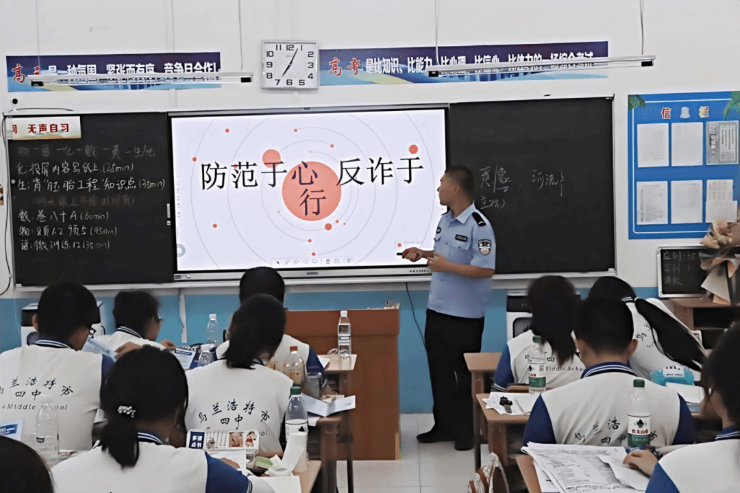 为进一步提升中学生防范电信网络诈骗能力及识毒、防毒、拒毒意识 ,增强校园反诈与禁毒工作,守护青少年健康成长,7月16日,我院暑期“三下乡”基层服务实践团前往兴安盟乌兰浩特市第四中学,开展以“反诈、禁毒宣传进校园 守护青春助成长”为主题的暑期“三下乡”社会实践活动。实践团成员分赴各班级,以生动的案例、深入浅出的讲解,为近200名高中生揭开了网络诈骗与毒品危害的神秘面纱。