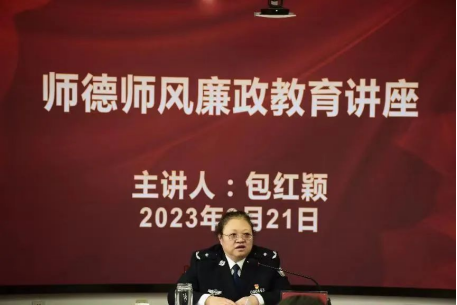 包红颖采用以案说法、寓理于事的方式,为新入职教师讲授了一堂生动鲜活、令人警醒的廉政教育课,为新入职教师筑牢理想信念根基,树立良好师德师风提供方向指引。