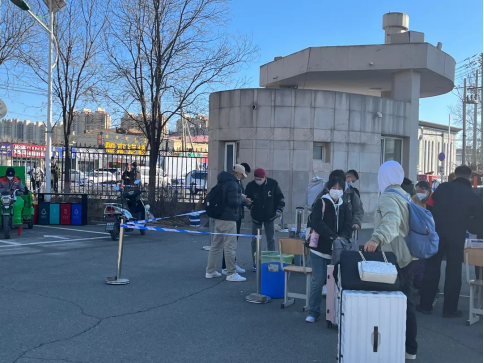 返校学生按照预先制定的错峰安排,陆续抵达学校。报道现场,学生按要求佩戴口罩,在教师指引下,完成抗原检测、体温检测等程序后进入校园,整个流程有条不紊、井然有序。