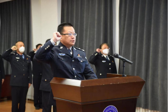 “我宣誓:忠于中华人民共和国宪法,维护宪法权威,履行法定职责,忠于祖国、忠于人民,恪尽职守、廉洁奉公,接受人民监督,为建设富强民主文明和谐美丽的社会主义现代化强国努力奋斗!宣誓人:李永林、邢轶清、郭志忠、刘伟、包红颖……”。在嘹亮的国歌声和一声声铿锵有力、掷地有声的宣誓声中,内蒙古警察职业学院举行了一场别开生面的宪法宣誓仪式。学院党委副书记、政治部主任邢轶清主持仪式。学院党委副书记、院长李永林领誓,线上线下近3000名师生参加宣誓。