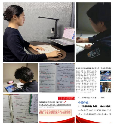 为贯彻落实教育厅的集中部署,思政课将抗疫宣讲以专题模块形式嵌入线上教学中。课堂上,结合央视对梁万年教授“坚持动态清零不动摇”的采访视频,引导同学们正确地认识当前的防疫政策,增强对政府、学校防疫措施的认同感。通过讲解钟南山、张定宇等人的英雄事迹,以及火神山、雷神山的建造奇迹,将生命至上、举国同心、舍生忘死的伟大抗疫精神植根于同学们的心灵。播放 “呼和浩特24小时”的视频,引导同学们通过讨论认识到:许多默默无闻的工作者,比如学校的教师、管理人员以及后勤、食堂的工作人员,他们坚守岗位、无私奉献,同样是英雄,要对他们心存感恩。当前同学们的首要任务是调适好自己的心理,上好每一节课,不虚度光阴。课后,同学们以寝室为单位观看了《同心战“疫”》的纪录片并撰写观后感。很多同学还以绘画、朗诵、歌唱、拍摄抗疫生活的短视频、小品剧等多种形式表达了他们保持阳光乐观的心态,坚定战胜疫情的信心。专题思政课帮助同学们认清了疫情形势、放下了心理负担、积极参与抗疫。