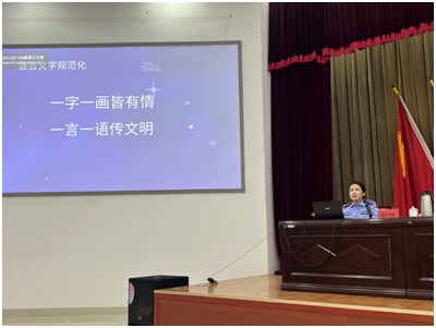 组织推普实践活动,凸显丰富形式。公安管理系以“推普周”为契机,参加学院第25届“推普周”启动仪式,认真领会了苏和生书记关于扎实开展推普活动的讲话精神;参加内师大张树天教授关于《语言文字规范与高校建设》的知识讲座,开阔思维、增长见识,进一步增强了教师的语言规范意识和推广普通话的参与意识。组织青年教师吴霜、其勒木格为公安厅监管培训班和在校学生开展国家通用语言文字规范化主题讲座,讲解了普通话与规范汉字的相关知识,着力提升在职民警和我校学生规范使用语言文字的素养。组织教师撰写推普征文,生动阐述了推广普通话、学习普通话为我们学习、工作、生活带来的深切变化和积极影响。