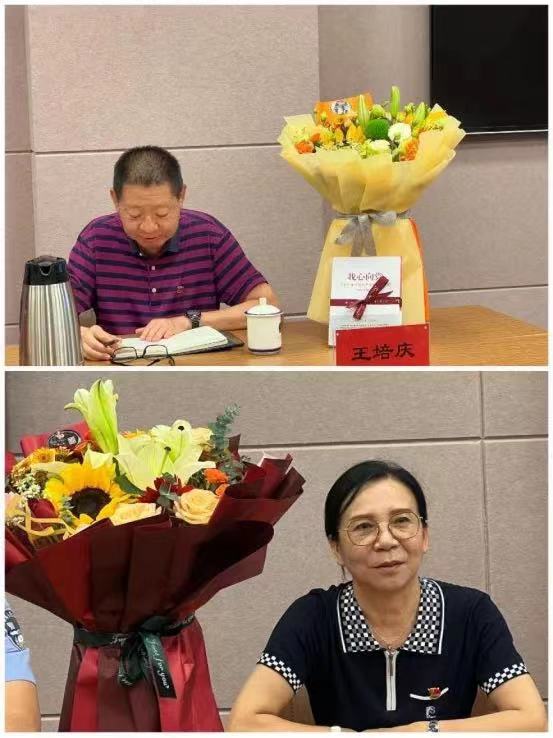 党支部为退休党员王培庆、富宏送上鲜花和祝福,赠送了《初心的力量》《我心向党》等书籍。他们深情回顾了在学院工作生活学习30多年来的点点滴滴,这里曾经是他们挥洒汗水和播种梦想的地方,虽然离开岗位进入退休生活,将永远保持共产党员“退休不褪色、离岗心向党”的政治本色,政治上思想上行动上与党中央保持高度一致。依然心系情系学院,一如既往地关心关注学院的发展、交管系的进步、党员教师队伍的成长,希望学院越来越好。作为分别入党32年和28年的老党员,他们对支部党员提出希望和期待,鼓励继续发扬、传承交管系好的作风和优良传统,在各项工作中奋勇争先、站前排、走前列。