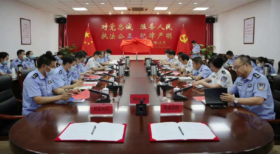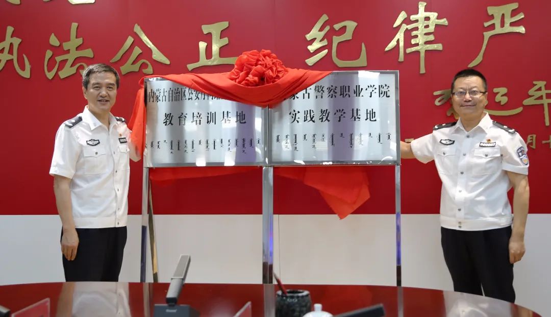 在与会人员的共同见证下,邢轶清副书记和忻海政委代表双方签署了《合作共建协议》,李永林院长和忻海政委为“内蒙古警察职业学院实践教学基地”“内蒙古自治区公安厅网络安全保卫总队教育培训基地”揭牌。