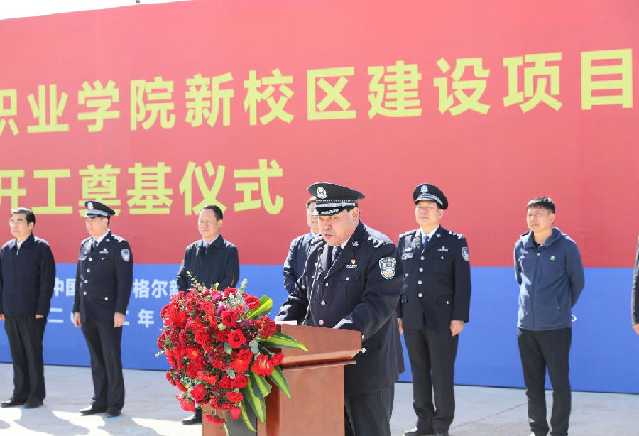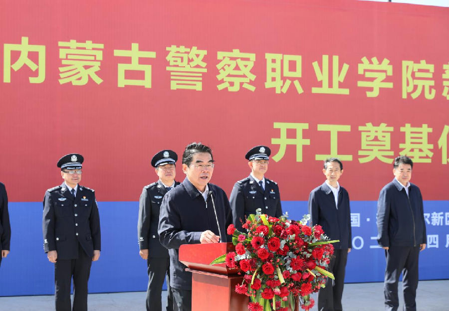 4月26日上午,内蒙古警察职业学院新校区建设项目开工奠基仪式在内蒙古和林格尔新区隆重举行。自治区党委常委、呼和浩特市委书记包钢,自治区党委常委、政法委书记丁绣峰,自治区党委政法委常务副书记李钢,自治区公安厅党委委员、副厅长张子军,自治区住房和建设厅党组成员、副厅长张鹤,自治区公安厅党委委员、政治部主任王斌,自治区公安厅党委委员、边境管理总队总队长刘同香,呼和浩特市政府党组成员、和林格尔新区党工委副书记、管委会主任朱建国以及公安厅、财政厅、教育厅、呼和浩特市政府、和林格尔新区管委会、和林格尔县等有关方面负责同志和学院领导班子成员,项管单位、施工单位代表出席仪式。内蒙古警察职业学院党委书记苏和生主持仪式。