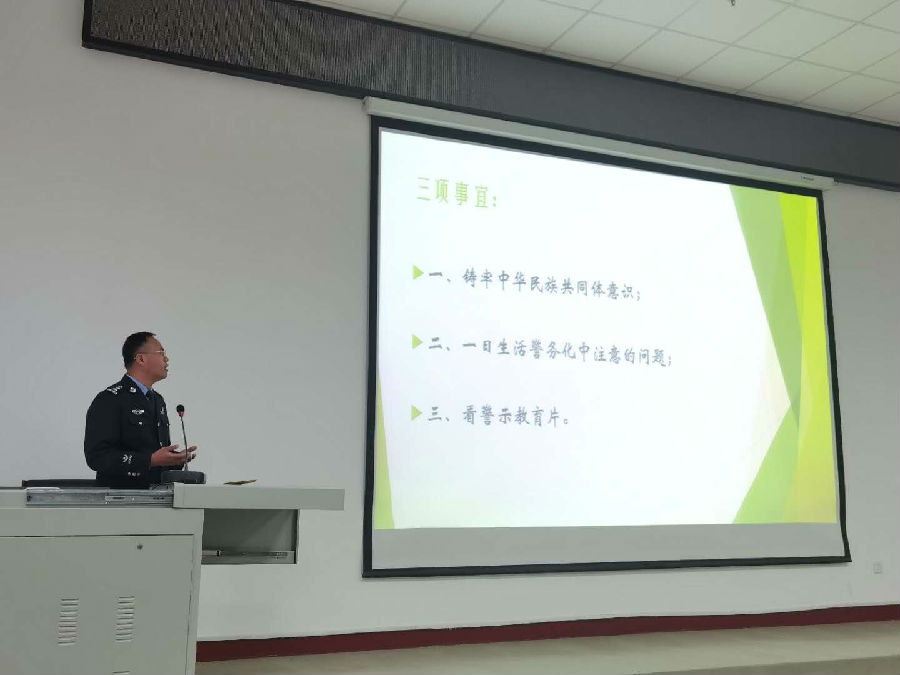 赵军老师指出,我们伟大的祖国,幅员辽阔,文明悠久,一部中国史,就是一部各民族交融汇聚成多元一体中华民族的历史,就是各民族共同缔造、发展、巩固统一的伟大祖国的历史。中国特色社会主义进入新时代,各族人民亲如一家。实现中华民族伟大复兴的中国梦,就要以铸牢中华民族共同体意识为主线,坚持共同团结奋斗、共同繁荣发展,促进各民族像石榴籽一样紧紧拥抱在一起。赵军老师要求,作为新时代公安预备警官,要坚决听从党的领导,高举民族团结大旗,弘扬伟大的爱国主义精神,紧密结合特警所承担的反恐、处突、防爆、维稳等技能要求,努力学习,刻苦训练,不负韶华,着力提升专业水平,争做一名维护各民族平等、团结、进步的特警队员。