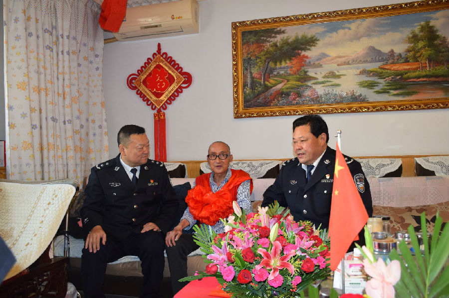 10月20日是原内蒙古警校老校长付永楠同志百岁诞辰日,上午,学院党委书记、院长赵永刚,政委苏和生、政治部主任陈瑛及师生代表前去慰问,并送上生日鲜花、慰问金及生日祝福。