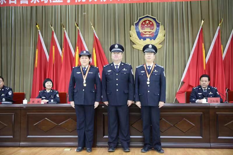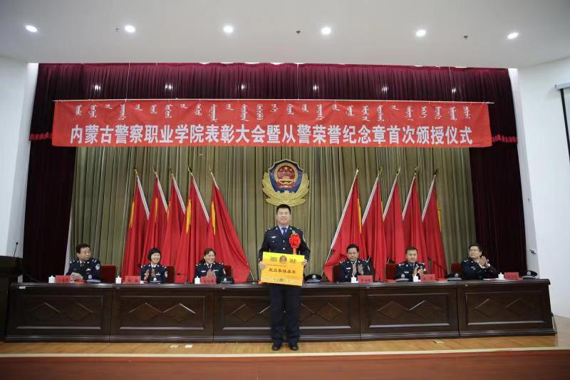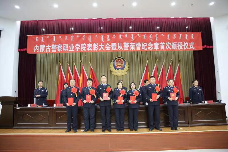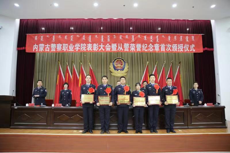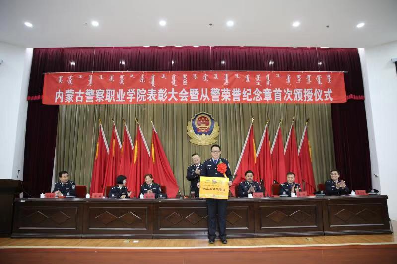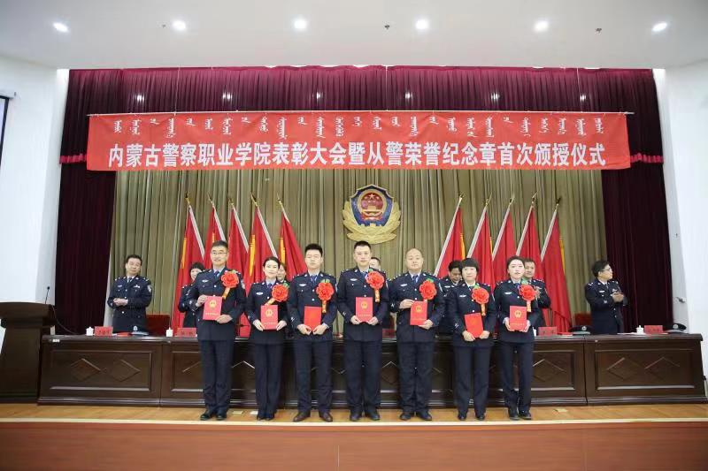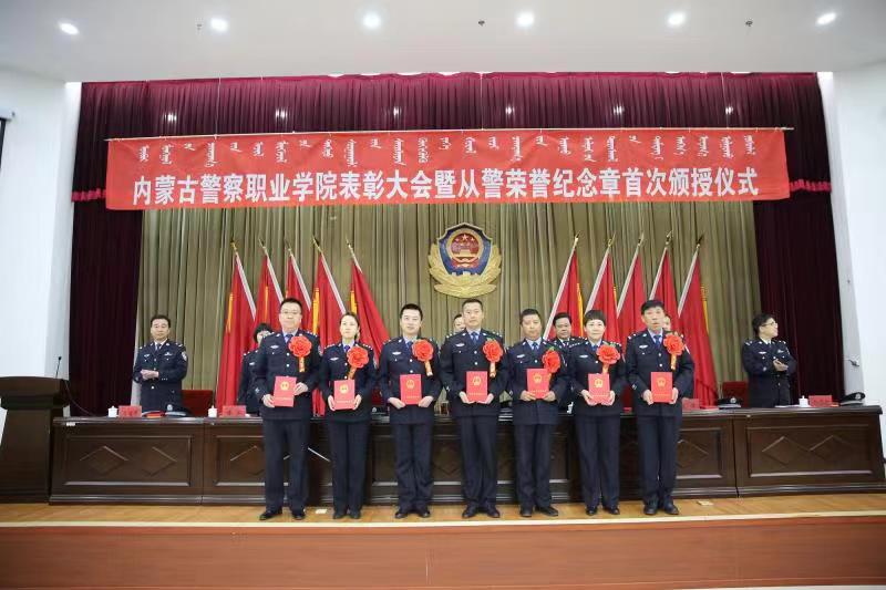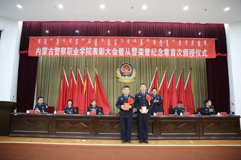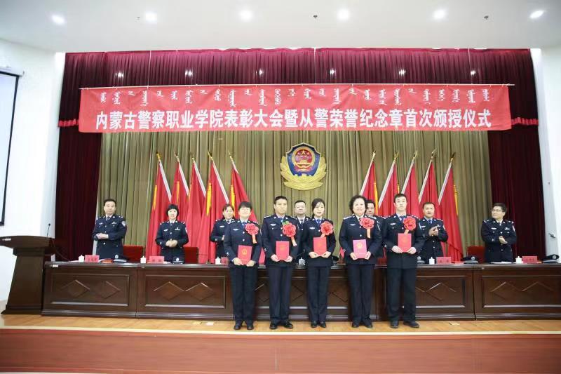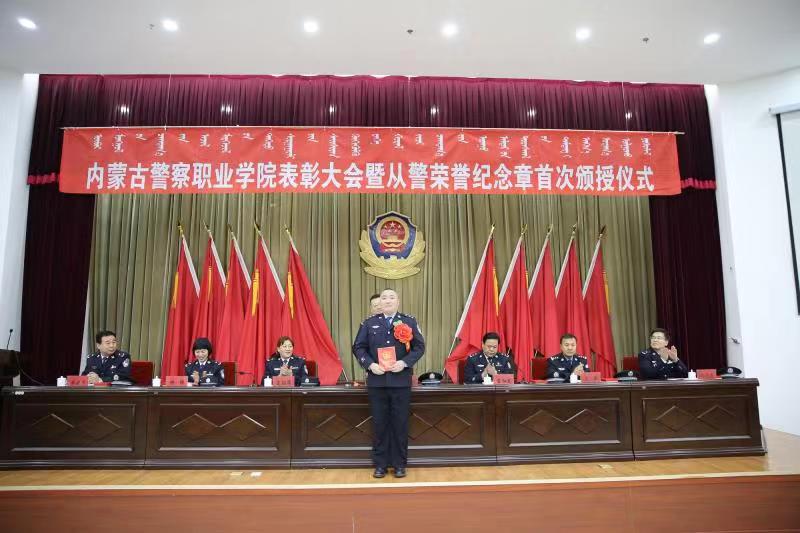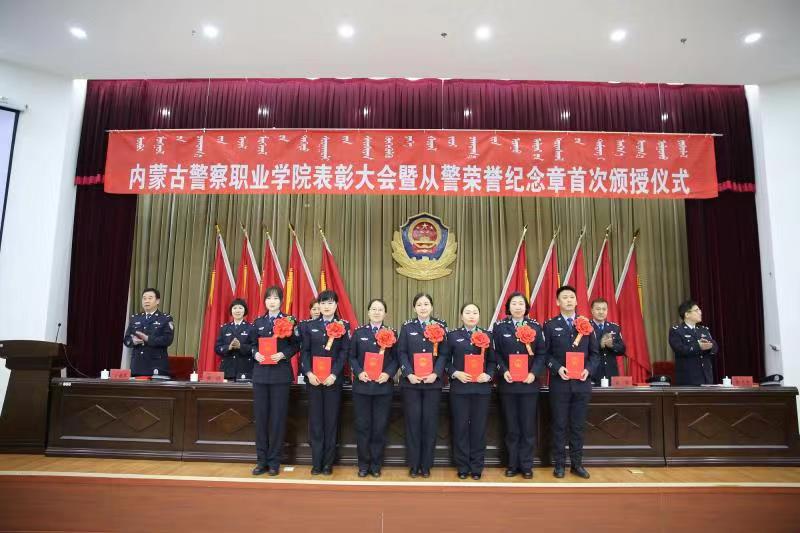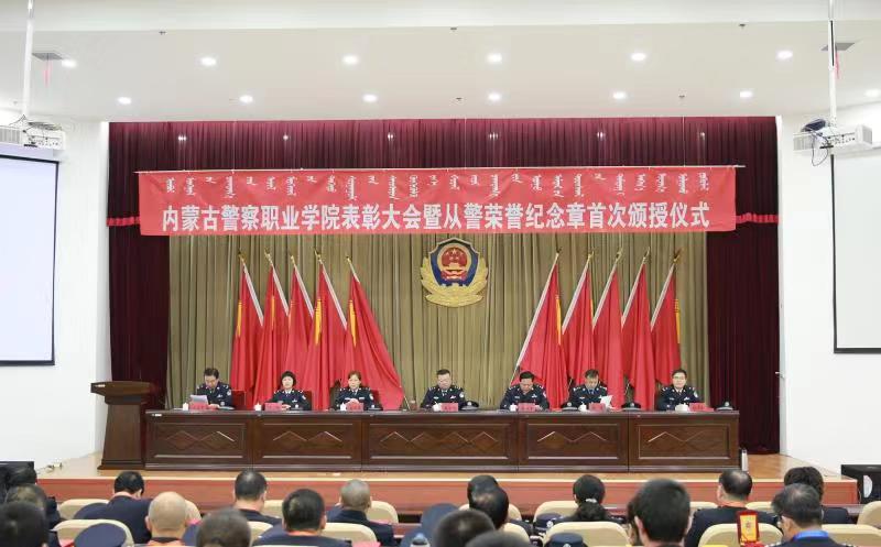 12月27日上午,内蒙古警察职业学院召开表彰大会暨举行从警荣誉纪念章首次颁授仪式,隆重表彰了2018年先进集体、荣立公务员三等功和公务员嘉奖人员以及70周年大庆安保维稳工作和专项工作获奖集体与个人,举行了从警35年、30年、20年、10年的荣誉纪念章首次颁授仪式。学院党委书记、院长赵永刚为民警代表颁授从警荣誉纪念章并讲话,学院党委委员、政委苏和生主持大会,党委委员、副政委窦丽萍,党委委员、纪委书记戴军分别宣读表彰决定,全院教职工参加大会。
