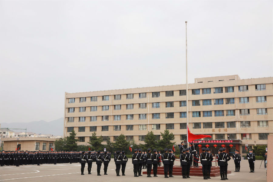 为庆祝中华人民共和国成立70周年,10月1日上午,内蒙古警察职业学院举行庄严隆重的升国旗仪式,并组织全体师生集中观看新中国成立70周年庆祝活动现场直播。