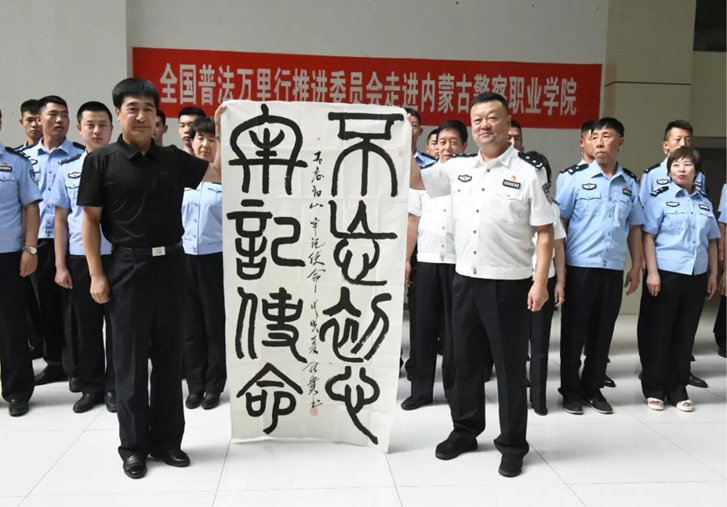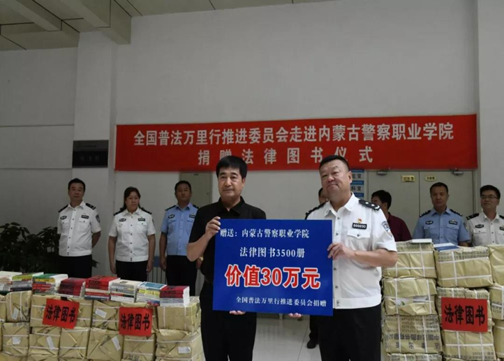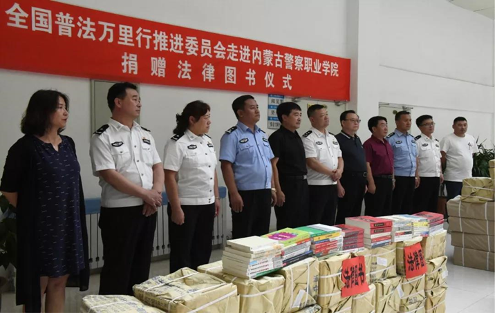 2019年8月12日下午,全国普法万里行推进委员会走进内蒙古警察职业学院捐赠法律图书仪式在学院图书馆举行。全国普法万里行推进委员会副秘书长张贵出席仪式并讲话,中国公安文学精选网内蒙古工作部主任、内蒙古自治区公安厅原副厅长、巡视员杨小平,全国普法万里行推进委员会内蒙古书画院院长、内蒙古军区原副参谋长翁乃奎,全国普法万里行推进委员会内蒙古书画院秘书长付杰,中国公安文学精选网内蒙古工作部办公室主任赵宁出席仪式。学院党委书记、院长赵永刚出席仪式并致辞,党委委员、政委苏和生主持仪式,公安厅政治部教育训练处处长邓忠,学院党委委员、副政委窦丽萍,党委委员、纪委书记戴军,党委委员、办公室主任郭志忠,党委委员、后勤处处长李启军出席仪式,部分师生代表参加仪式。