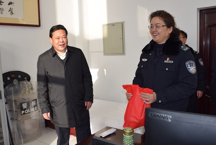 2月4日上午,学院党委书记、院长赵永刚,政治委员苏和生亲切看望慰问春节期间坚守在学院工作岗位上的民警职工和留校学生,对他们致以节日的问候和新春的祝福。党委委员、办公室主任郭志忠参加慰问。
