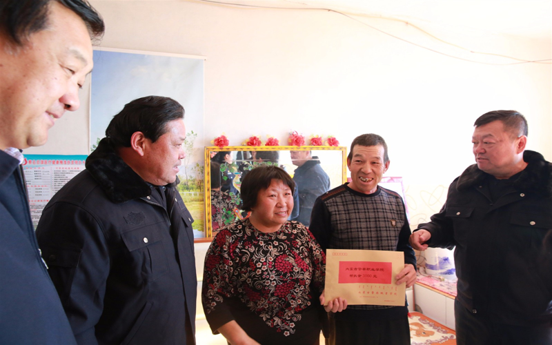 为全面贯彻落实党的十九大关于脱贫攻坚工作的部署要求和近期中央、自治区党委政府脱贫攻坚系列会议精神,贯彻落实自治区副主席、公安厅厅长杨伟东同志在商都县脱贫攻坚项目推进会上的讲话精神,扎实做好学院精准扶贫工作,11月30日,学院党委书记、院长赵永刚带领党委班子全体成员一行,深入我院扶贫点乌兰察布市察右后旗白音查干镇霞江河村,慰问调研指导精准扶贫工作,走访慰问贫困户和学院驻霞江河村扶贫工作队,并对学院下一步扶贫工作作了具体部署。