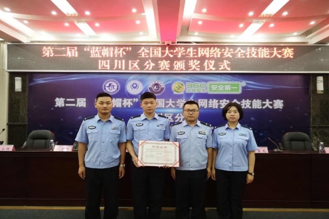 2018年9月4日上午,中国人民公安大学主办的第二届“蓝帽杯”全国大学生网络安全技能大赛总决赛在北京国家会议中心开幕。我院参赛队由2016级信息网络安全监察专业张双全、王梓、侯亚妮等三名学生组成,并由公安管理系杨培林为指导老师,带队参加本次总决赛。