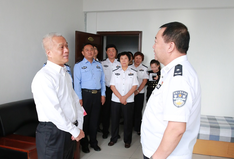 杨伟东副主席走进蒙语教学部,与蒙语教学部主任、公安学教授毕力贡亲切交谈,详细了解了学校建校史及蒙古语授课教学情况,对公安教师进一步学思想、强能力、补短板、促提升等方面提出了具体要求和殷切希望。在交通管理系交通技术教研室,杨伟东副主席认真听取了交通技术教研室主任、副教授王良秋关于交通技术专业的课程设置、教师配备及教学进展情况,提出要将“三化一高”新理念新标准新要求落实到教学教育工作的每一个环节,提高教学工作的规范化、智能化、精细化水平,进一步提高教学工作质量,为学院“强校升位”工作目标作出贡献。在政治理论教学部思想道德修养教研室,杨伟东副主席与政治理论教学部政治理论课教授高鹏深入交流,提出要进一步加强学生的思想道德修养,树立正确的人民警察价值观,同时要做学生的知心朋友,加强与学生的互动交流,为学生的未来发展作出合理指引,当好学生健康成长的指导者和引路人,切实担负起育警铸剑的神圣职责,严格按照习近平总书记提出的“对党忠诚、服务人民、执法公正、纪律严明”总要求,高标准、严要求,力争为全区公安战线培养出更多优秀的人民警察。