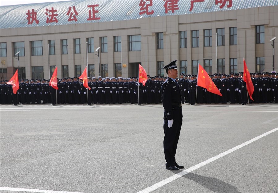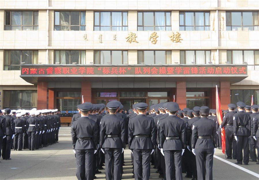 为全面加强和改进警务化管理工作,检验“抓规范、抓养成、抓素质,严格警务化管理”成果,传承雷锋精神,弘扬时代先锋,3月14日下午,内蒙古警察职业学院隆重举行“标兵杯”队列会操暨学雷锋活动启动仪式。学院党委委员、副政委窦丽萍,党委委员、副院长郝秀文出席活动,学生处处长包明主持活动。学生处全体人员及2016级、2017级在校学生参加活动。