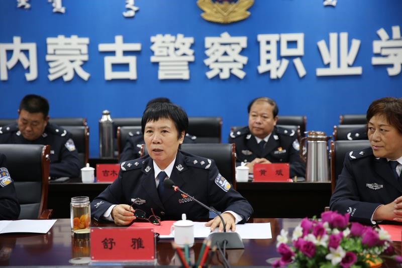 舒雅院长从学院的发展沿革、公安学历教育、在职民警培训、师资队伍建设、专业课程建设、蒙汉双语教学、校局合作、素质强警交流等方面作了专题汇报。同时,还就学院升级发展问题、蒙汉兼通学生就业问题提出意见和建议,希望自治区政府给予政策方面的支持。