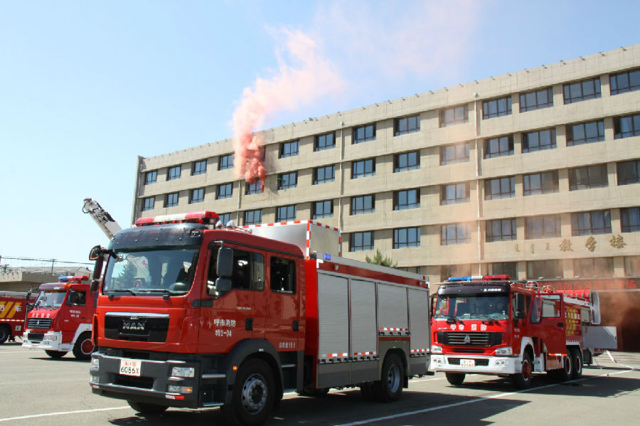 演练结束后,呼市消防支队特勤一中队官兵向全院师生讲解逃生自救、灭火器具使用和受伤人员救护等知识以及注意事项问题。全院师生现场参观了消防车辆和器材。
