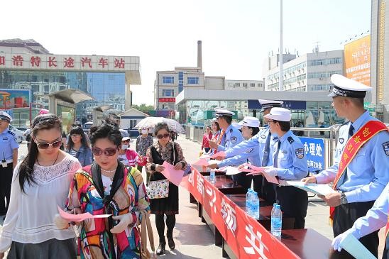 本次活动由交通管理系承办,经过精心组织策划,王良秋和徐以磊老师带领警院2014级交通管理专业学生到呼和浩特市新世纪广场、呼和浩特市火车站、阿尔泰游乐园开展了以“创新引领、共享发展”为主题,科技惠民为主线的宣传活动。通过开展公安科技讲座、悬挂宣传条幅、发放宣传资料等多种形式,向公众集中宣传科技强警成果。此次活动对促进科技进步与创新、普及科学知识、弘扬科学精神、提高科学素养起到了积极的作用。参与活动的学生也积累了宝贵的社会实践经验,宣传活动取得了良好的社会效果。