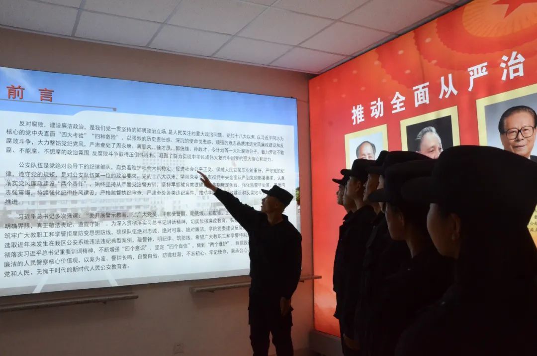 为进一步加强党风廉政建设,切实增强广大新警学员廉洁自律意识和拒腐防变能力,提高干部队伍的纯洁性,按照自治区公安厅政治部培训计划和课程安排,近日,组织2022年新招录人民警察初任培训班全体学员集体参观内蒙古警察职业学院廉政教育展室。