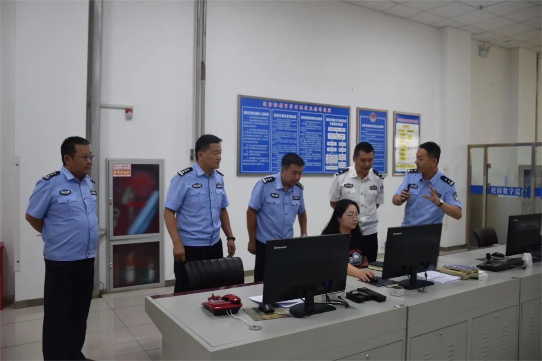 根据学院2023年秋季学期开学工作部署会议精神,为保障新学期顺利开学和校园安全,8月24日,党委委员、副院长刘伟、哈布日以及办公室、后勤处、学生处等相关部门主要负责人一行对校园数字监控中心、食堂、学生宿舍、校门卫、教室等重点场所的各项安全工作进行全面检查。