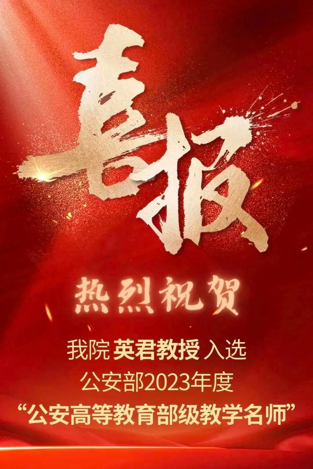 近日,公安部公布了2023年度“公安高等教育部级教学名师”名单,我院公安管理系教授英君成功入选。