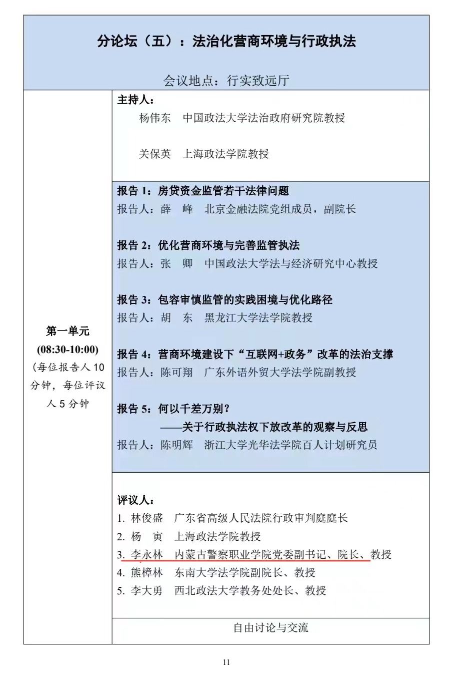 11月19日上午,第五分论坛于广外国际学术交流中心举行,议题为“法治化营商环境与行政执法”。李永林教授作为评议专家发表了评议意见。