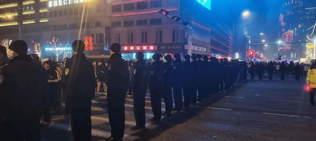 2023年12月31日,学院2000名学警整装待发,分批到达各自岗位开始执勤。工作中,学警们在带队老师和民警的带领指挥下,坚守在一线执勤岗位,所有同学都表现出优良的工作作风,有的学生逆流而上,为防止踩踏喊哑了嗓子;有的学生帮助家长及时找到走失的小孩;有的学生面对群众的困难及时帮助;有的学生值守位点特殊为了群众安全只能背对烟花表演坚持不动;有的学生为群众及时找回丢失的手机;有的学生面对不明事由的群众镜头不卑不亢,耐心解答……