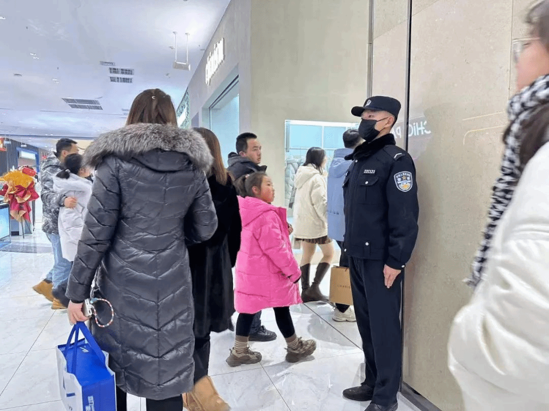 学警们在奥莱小镇站岗