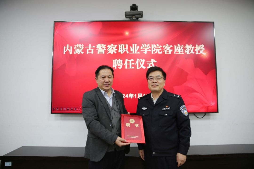 为深入贯彻习近平总书记关于禁毒工作的重要指示批示精神,进一步落实国家、自治区禁毒办关于加强毒品预防教育工作的系列部署要求,完善“教学研练战”一体化人才培养模式,2024年1月19日,内蒙古警察职业院举行客座教授聘任仪式,聘请山西警察学院文博人才培训示范基地主任、教育部学校艾滋病预防教育专家组副组长、国家禁毒委员会禁毒教育智库专家范斌为学院客座教授。学院党委委员、副院长郭志忠为范斌颁发聘书。自治区公安厅禁毒总队副总队长妥雅拉,学院教务处、侦查系、治安系负责人及相关教师等参加会议。