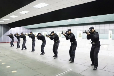 射击馆内,特警专业的学生为代表们进行了枪操表演,并在表演结束后对枪操动作作出细致的讲解,让各位代表们对我院特色警务技能有了近距离的体验与了解,同时也对公安工作的复杂性与危险性有了更深刻的体会。