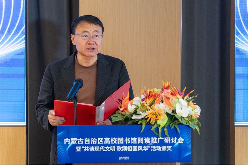 2024年4月21日,我院图书馆参加由内蒙古自治区教育厅指导,内蒙古自治区高等学校图书馆工作委员会主办,内蒙古师范大学图书馆承办的内蒙古自治区高校图书馆阅读推广研讨会暨“共读现代文明 歌颂祖国风华”活动颁奖仪式。内蒙古教育厅党组成员、总督学朱宝江,高等教育处二级调研员郭利杰,内蒙古师范大学副校长贾美林,内蒙古自治区图书馆学会理事长、内蒙古自治区图书馆馆长何亚睿出席会议。区内多家高校图书馆馆长和专家学者、图书馆同仁参会。