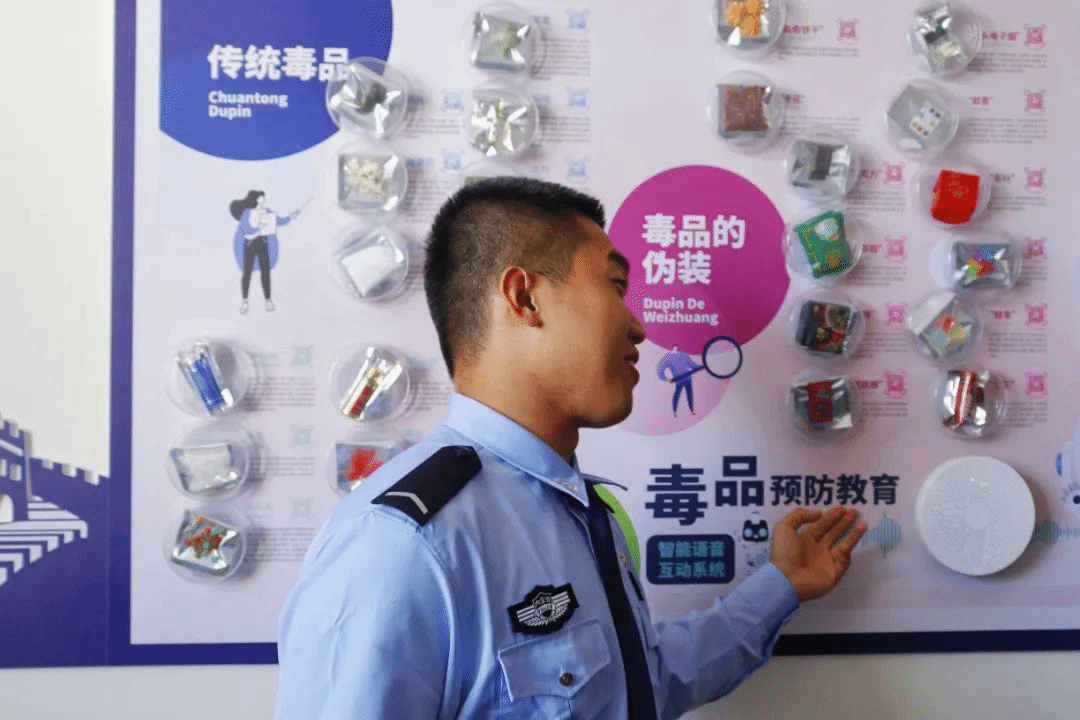 展馆占地面积120平方米,由禁毒历史讲解室、禁毒教育宣讲室、仿真毒品识别室、吸毒危害警戒室、防毒拒毒教育室、禁毒知识科普室共计六部分组成。