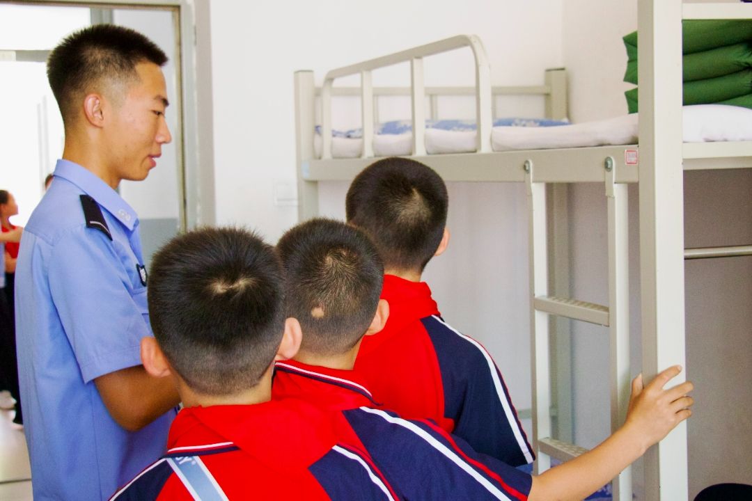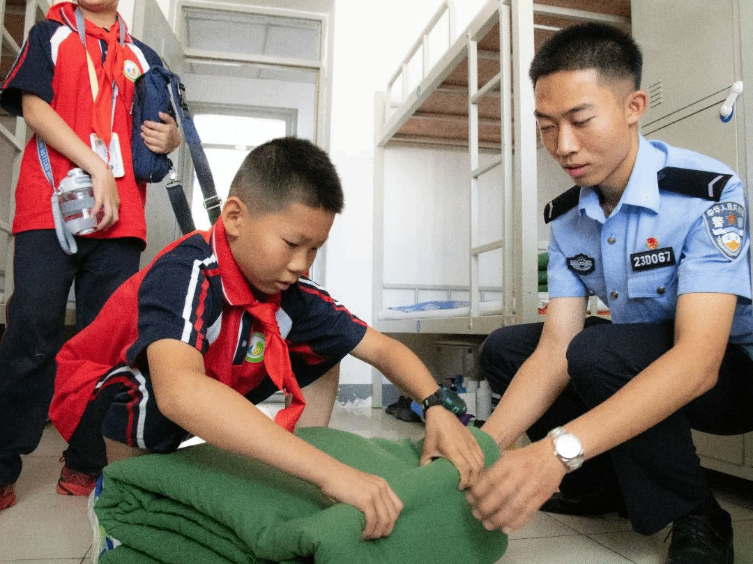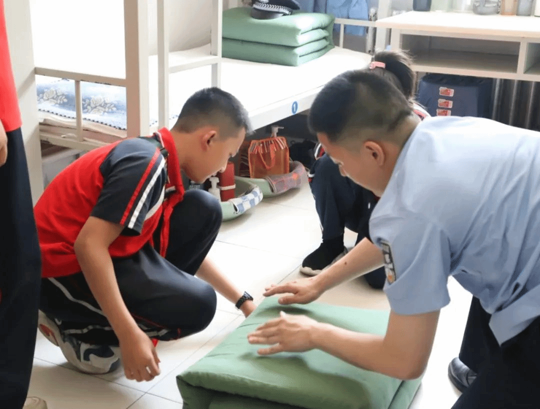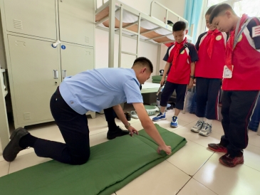 来到学生宿舍,干净整齐的内务、方方正正的“豆腐块儿”让大家深感震撼。学生们团团围住学员,认真学习叠被、衣柜和个人物品收纳,从生活细节里感悟到警营中优良的作风和严明的纪律。