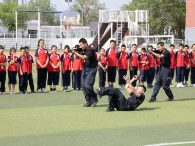 烈日当空,身姿矫健。警务实战社团的学员为同学们进行了精彩的战术小组推进演示和枪操表演,他们干净利落的动作、坚毅笃定的眼神、英姿飒爽的身姿,瞬间把孩子们“圈粉”。表演结束后,孩子们带着无限的好奇心和极大的兴趣纷纷上前体验这些平时只能远观的装备,与警用装备“零距离”接触。