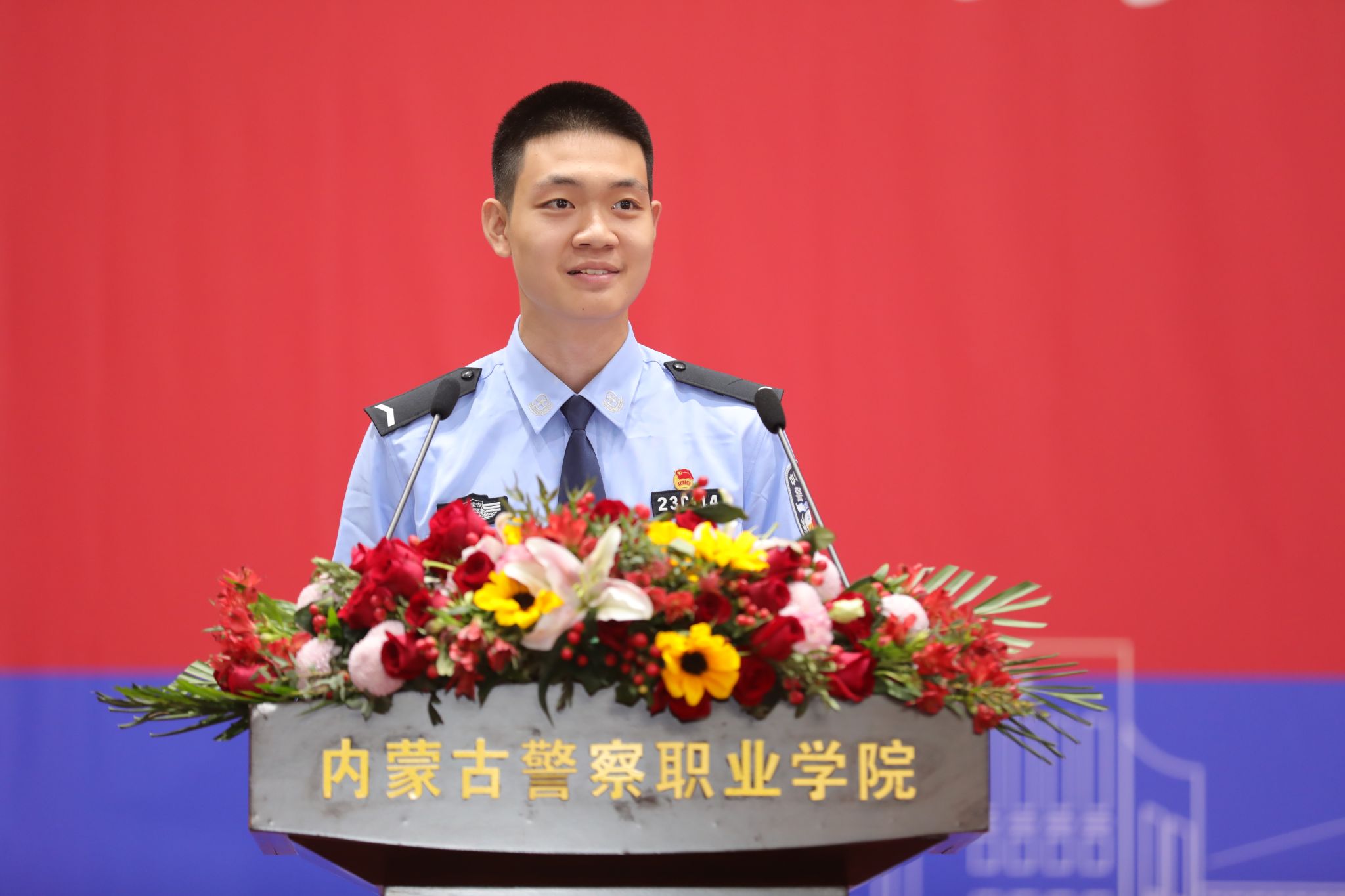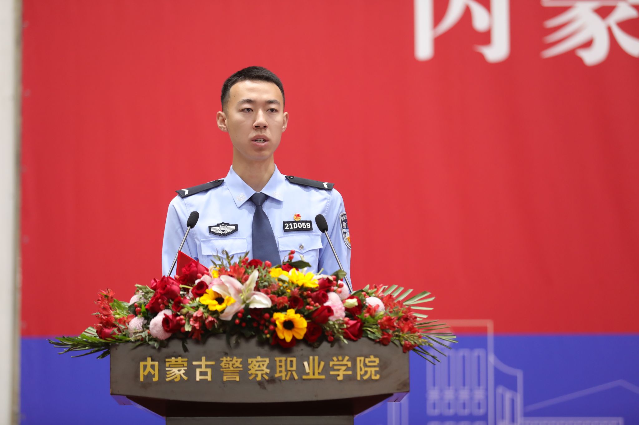 毕业生代表2021级政治安全保卫二区队陈骁同学发言,代表全体毕业生对母校和师长的栽培表达诚挚谢意,向一同毕业的同窗好友表达美好祝愿。