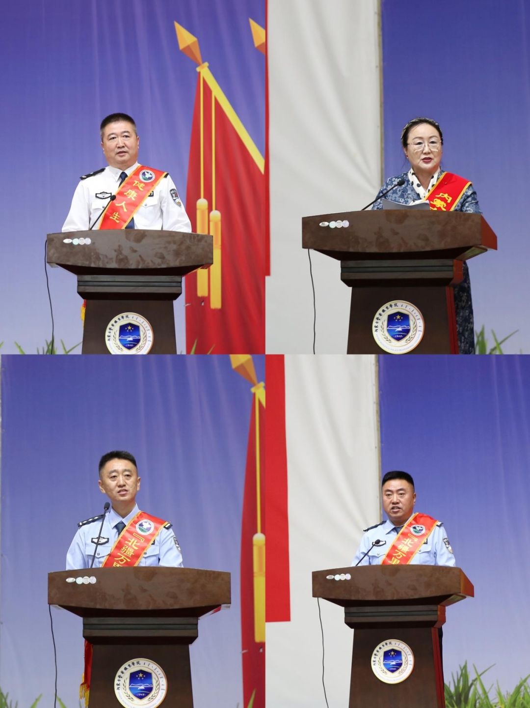 9月13日下午,内蒙古禁毒“北疆万里行”巡回宣讲活动高校宣讲第一站走进内蒙古警察职业学院,本次宣讲主题为“守护生命拒绝毒品 创建绿色无毒校园”。公安部党风政风警风监督员、内蒙古禁毒首席形象大使陶迎春,自治区禁毒办常务副主任、公安厅禁毒总队总队长刘志刚,公安厅禁毒总队民警韩来静,呼和浩特市新城公安分局禁毒大队大队长陈根生等宣讲团成员出席活动,学院党委委员、副院长郭志忠参加活动并致辞。学院2023级、2024级学生及部分教师1500余人聆听宣讲。宣讲活动由学院教务处处长巩利萍主持。