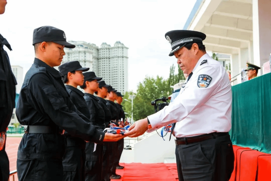 苏和生书记为2024级新生代表颁授警衔、警号和胸徽。