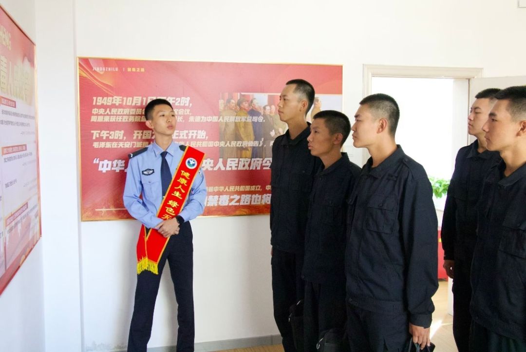 在禁毒教育宣讲室中,禁毒志愿者通过生动的讲解,向2024级新同学普及新中国禁毒工作以及我国在禁毒国际合作方面取得的成就。