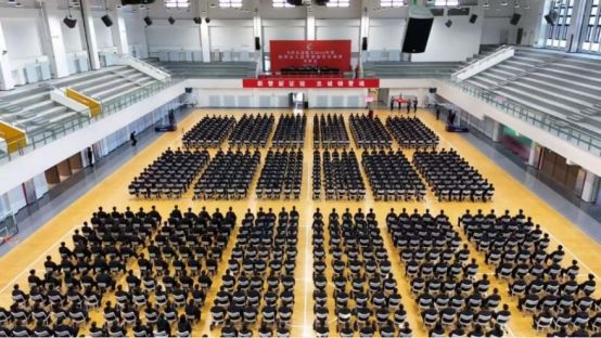 2025年3月25日上午,全区公安机关2024年度新招录人民警察(公安院校毕业生)初任培训班在内蒙古警察职业学院和林格尔校区隆重开班。自治区公安厅政治部人事训练处处长江田,内蒙古警察职业学院党委委员、副院长哈布日,成教处处长陶德,成教处学员大队大队长周亮出席开班式,1110名培训班学员参加,开班式由公安厅政治部人事训练处副处长王宾祖主持。