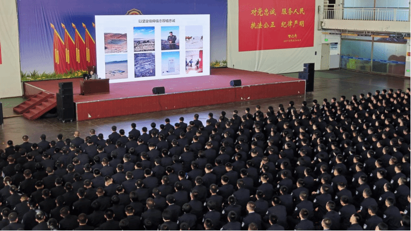 为加强学院学生忠诚教育,培树人民警察职业荣誉感、使命感、责任感,铸牢忠诚警魂,常态化开展“感党恩 听党话 跟党走”实践活动,4月2日下午,学院铸牢中华民族共同体意识教育研究中心邀请政治理论教学部秦晓慧副教授,在警体馆为学院2024级学生开展“铸牢忠诚警魂”专题讲座。政治理论教学部全体专兼职教师、学管干部及2024级学生共1200余人参加。