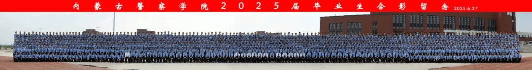 上午9:30,校园里弥漫着喜悦与惜别的气息。学院领导、嘉宾与全体2025届毕业生精神抖擞,列队整齐,拍摄毕业大合影。镜头下,藏蓝色的身影汇聚成一片青春的海洋,肩章上的警徽闪耀着责任的光芒,一张张年轻而坚毅的脸庞,写满了对母校的眷恋与对未来的无限憧憬。这一刻,警院时光被永恒定格。