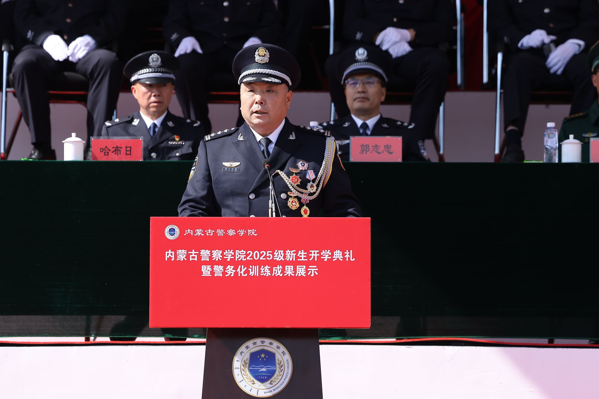 赵剑南强调,这场军训不仅锤炼了体魄,磨练了意志,更塑造了令行禁止的作风、团结协作的精神和对纪律规范的敬畏。这是一次身体锻炼,更是一次精神升华和思想淬火,为你们即将开启的警院学习生涯奠定了坚实基础,上了极为重要、印象深刻的“第一课”。他对2025级新生提出了“四点希望”:一要矢志铸牢忠诚警魂。坚持把政治忠诚摆在首位,将听党指挥的政治基因融入灵魂、融入血脉、融入行动。要坚定理想信念,坚持不懈用习近平新时代中国特色社会主义思想武装头脑,加强政治理论学习,坚定拥护“两个确立”,坚决做到“两个维护”,确保绝对忠诚、绝对纯洁、绝对可靠。要增强政治能力,铸牢中华民族共同体意识,在大是大非面前做到头脑清醒、旗帜鲜明,不断增强政治判断力、政治领悟力、政治执行力。要传承红色基因,弘扬“蒙古马精神”,传承内蒙古公安光荣传统和优良作风,忠诚使命、敢打善拼,不怕牺牲、无私奉献,争做内蒙古公安事业的优秀接班人。二要刻苦学习业务本领。坚持以实战化强本领,毕业即能战、铸魂砺剑锻精兵。要学习真知识,学院从本届开始全面推行实战化教学,严抓教学质量和教学秩序,优化人才培养方案,完善理论与实践有机结合、教学与实战紧密衔接的课程体系,突出实验、实训、实习、实践。开设课程中,既有公安基本常识、又有专业警务内容,既有基础理论知识、又有新型前沿学科,从本届开始专门增设了公安联考课程。大家要下得苦功夫、求得真学问,切实提升专业化综合素养。要练就硬本领,清醒认识到,考入警院并不代表可以高枕无忧,各项成绩将决定能否顺利毕业、顺利从警。学院坚持严进严出,在“教学研练战”一体化人才培养模式框架下,严格执行《学生学籍管理规定》《考试工作规定》等规章制度,通过规范化考试,将考试成绩与学籍管理和毕业就业直接挂钩,并作为毕业从警最主要的评价指标。各位同学务必将学习作为头等大事、第一要务,确保学有所成。要珍惜好时光,把握难得的在校学习机会,加强思想淬炼、政治历练、实践锻炼和专业训练,掌握扎实的理论知识,练就过硬的实战技能,努力成为一名德才兼备、文武兼修的合格人才,为未来的职业生涯打下坚实基础。我们也将全力将本届学生打造成内蒙警院的示范生和未来内蒙警界的排头兵。三要严守纪律规矩底线。坚持以警务化提素质,入校即从严、淬火加钢炼铁军。要遵章程,对标人民警察标准,对表预备警官身份,严格执行公安机关人民警察《纪律条令》《内务条令》和学院《学生警务化管理规定》等规章制度,并将执行情况作为学籍管理重要一环,不断促进形成严谨自律、奋发向上的良好风气。要守纪律,将军训中养成的优良作风和纪律意识,持之以恒贯穿到今后的学习、训练和生活始终,坚决做到服从命令、听从指挥、令行禁止,切实形成“人人讲规范、事事守纪律”的浓厚氛围。要砺品行,着眼公安院校鲜明特征,以警务化管理为标准,通过常态化开展课堂秩序、警容风纪、内务卫生等严督实查,强化警务技能专业化、日常行为规范化、纪律作风长效,不断培育良好的职业素养、气质内涵和作风形象。四要锤炼过硬意志品质。坚持以昂扬斗志和向上心态面对未来的考验与挑战,不断披荆斩棘、超越自我。要坚定报国之志,胸怀“国之大者”,立鸿鹄志、做奋斗者,自觉将个人发展成才融入报效祖国、服务人民的实践中,把个人理想抱负融入中华民族伟大复兴的征程中。要砥砺奋进之志,持续发扬军训中展现出的坚韧不拔、顽强拼搏、精诚协作等精神风貌,在今后的学习训练中勤学善思、博学笃行,做到勇于进取、勇攀高峰。要实现成才之志,牢牢把握公安工作的职责使命、重大任务和基本遵循,学为战、练为赢,砺精兵、守北疆,为维护国家政治安全和全区经济社会稳定奉献青春、贡献力量,努力成长为建设祖国、守护平安的栋梁之才。