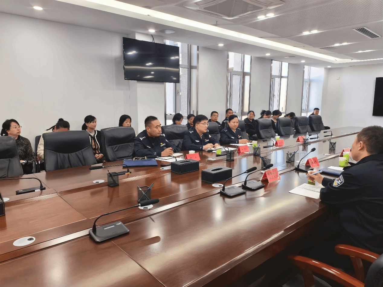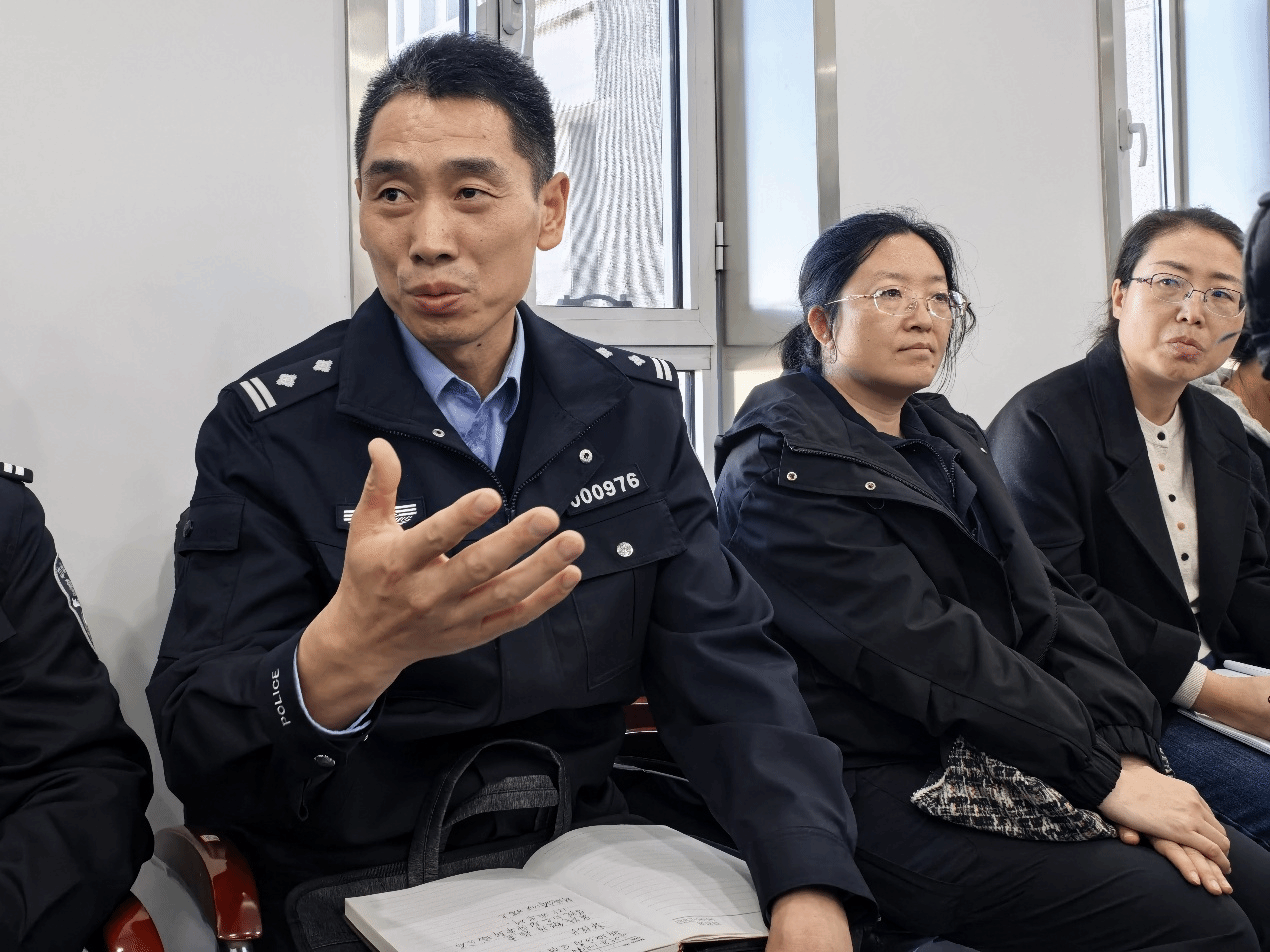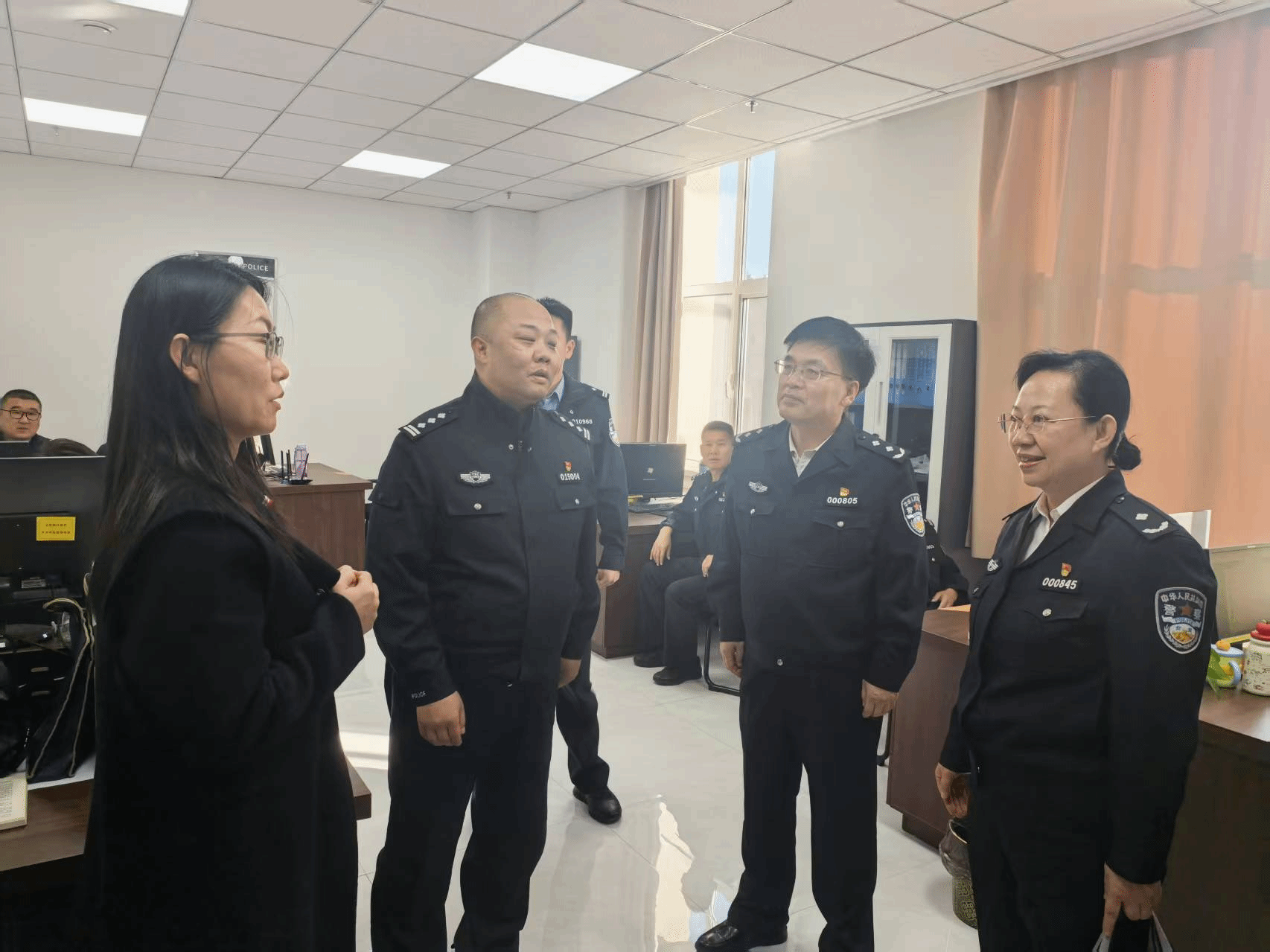 为贯彻落实学院实战化教学改革部署要求,深入了解2025年教师实践锻炼情况,推动实践锻炼各项工作举措落地落细,推进校局合作共建走深走实,10月17日,学院党委委员、副院长郭志忠带领教务处相关负责人一行赴呼和浩特市公安局新城区公安分局及丁香北路、城北等基层派出所,看望学院实践锻炼教师,并开展座谈交流。新城区公安分局党委副书记、政委伊曙龙及相关部门负责人参加活动。
