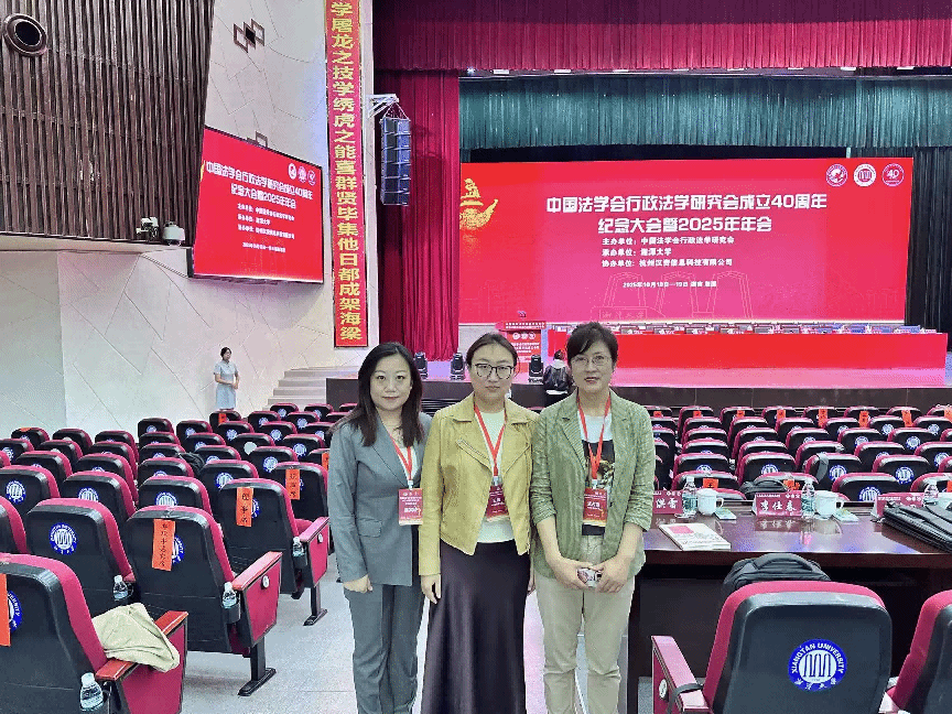 2025年10月18日至19日,中国法学会行政法学研究会成立40周年纪念大会暨2025年年会在湘潭大学隆重召开。全国人大常委会、最高人民法院、最高人民检察院、司法部等部门的领导,来自北京大学、清华大学、中国人民大学、中共中央党校(国家行政学院)等高校和科研机构的专家学者等500余人齐聚一堂,共襄盛举,回顾四十年辉煌历程,共绘新时代行政法治发展蓝图。我院教师迟占霞、唐雅娟、王倩应邀参会学习交流。